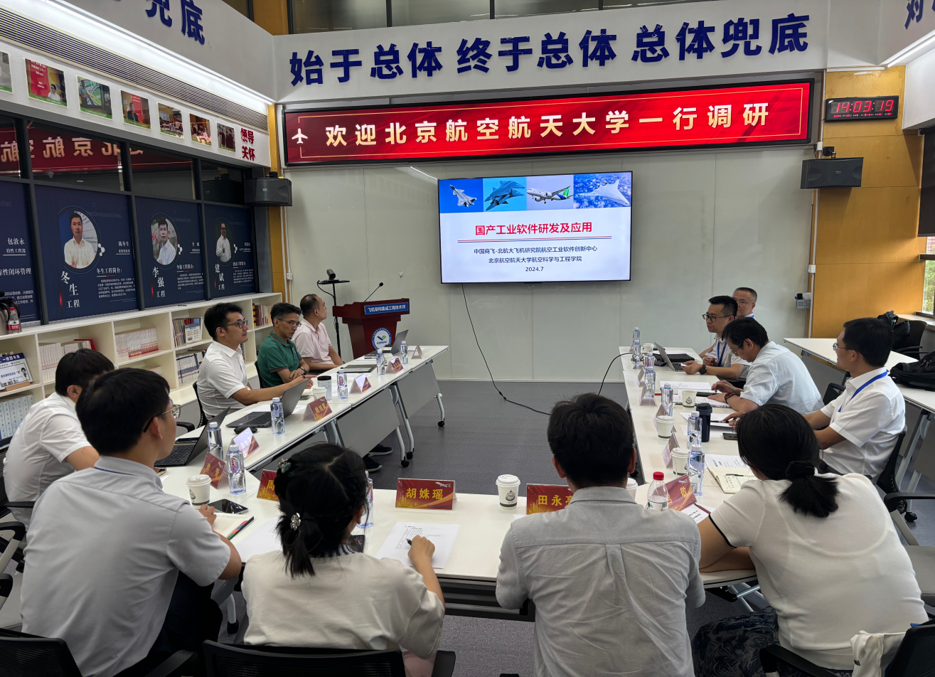 下午,由上飞院一所党总支副书记、副所长徐晶主持工作交流会议。徐晶表示,北航的工业软件研发与上飞院一所十分接近,有良好的合作基础,希望有更多优秀青年老师到上飞院相关部门挂职锻炼。潘翀介绍了中国商飞-北航大飞机研究院揭牌成立航空工业软件创新中心的背景和北航的学科优势。双方围绕推进工业软件创新合作等内容展开深入交流,对未来强化校企联络形成双向回馈达成共识。