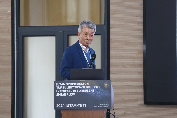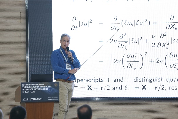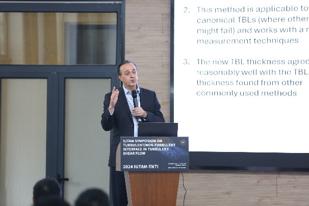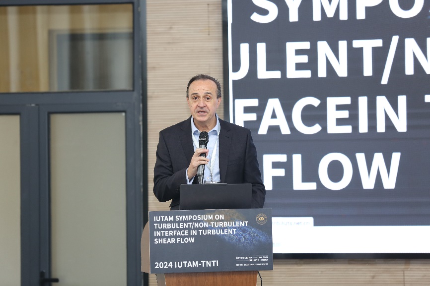 研讨会于2024年10月9日上午开幕,会议共同主席Ivan Marusic院士代表会议主席王晋军教授及会议科学委员会首先致开幕词,他向到场来自不同国家的专家学者表示热烈欢迎,期待本次会议能为TNTI领域的全球科学家们交流搭建平台,为推动该领域的发展发挥积极作用,并向IUTAM、北京航空航天大学及各协办单位、IUTAM-TNTI科学委员会以及本地组委会的付出表示感谢。