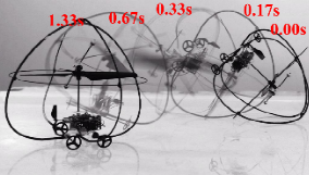 此外,该飞行器通过额外携带一个重0.37g仿生外壳,在地面模式下具备自扶正的能力。通过实验验证,飞行器携带仿生外壳后实现了223秒的稳定飞行,能够在多种地形条件下完成地面自扶正,成功实现了空地两种模式的稳定转换。