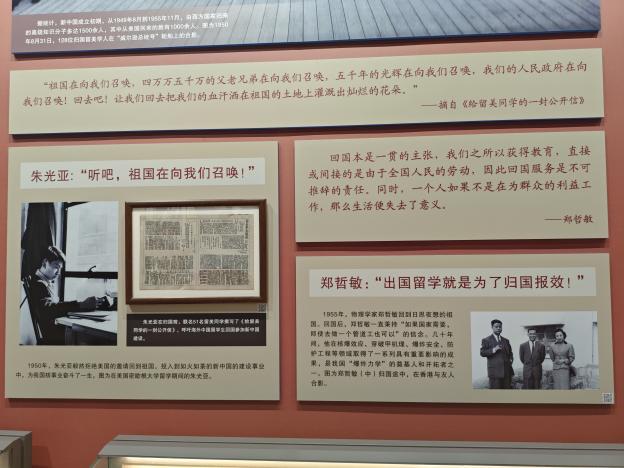 最后,支部成员们跟随讲解员深入参观了“共和国脊梁”主题展览,展览包含“党对科技界的领导”、“高攀精神火炬矢志接力奋斗”以及“开放合作走向复兴”三个部分。“听吧,祖国在向我们召唤!”“出国留学就是为了归国报效!”“再苦,我们也要坚持,如果你想要为我们这个民族做一点事情的话。”,老一辈科学工作者的句句箴言背后是他们矢志报国、服务人民的高尚情怀。