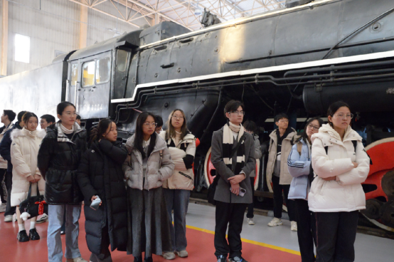 随后,同学们参观了中国铁道博物馆东郊展馆。在展厅中同学们近距离看到了中国铁路不同历史时期各种型号的机车车辆百余台。