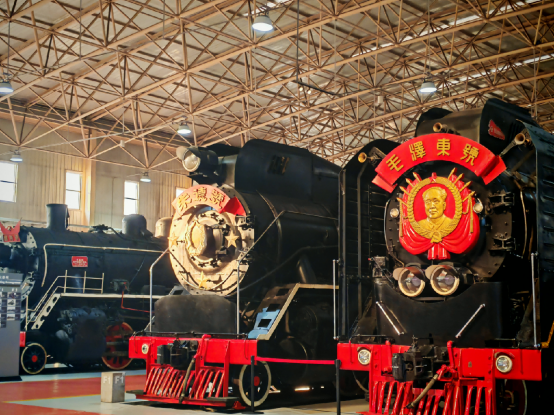 其中有中国现存最早的机车,有以党和国家领导人名字命名的“毛泽东号”和“朱德号”蒸汽机车,也有中国人自己设计、英国制造的被誉为机车“时装模特”的KF1型006号蒸汽机车、新中国成立后自行设计制造的第一代内燃机车和电力机车以及中国第一代高速动车组列车“中华之星”。