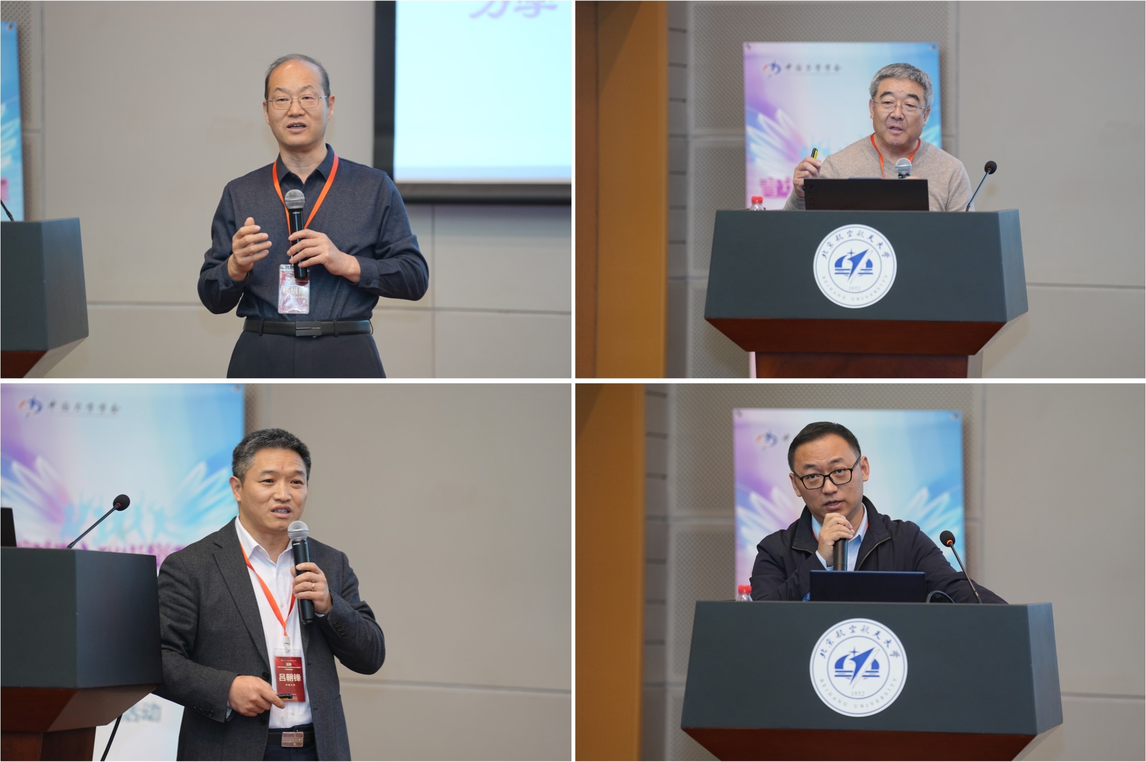 随后进入大会报告环节,共邀请了10位专家作报告。上午的会议中,南方科技大学夏克青院士、石家庄铁道大学杨绍普教授、我校王晋军教授、宁波大学吕朝锋教授、北京理工大学龙腾教授分别作了题为《准二维湍流中的速度环量和能谱凝聚》、《成长与感悟》、《面向航空航天高速流动速度场测量的技术与挑战》、《超重力环境物质扩散与材料变形》、《数据驱动的复杂飞行器系统模型降阶与近似优化技术》的邀请报告。报告分别由南京航空航天大学赵宁教授、南京航空航天大学卢天健教授、中国空气动力研究与发展中心陈坚强研究员、四川大学王清远教授、天津大学汪越胜教授主持。