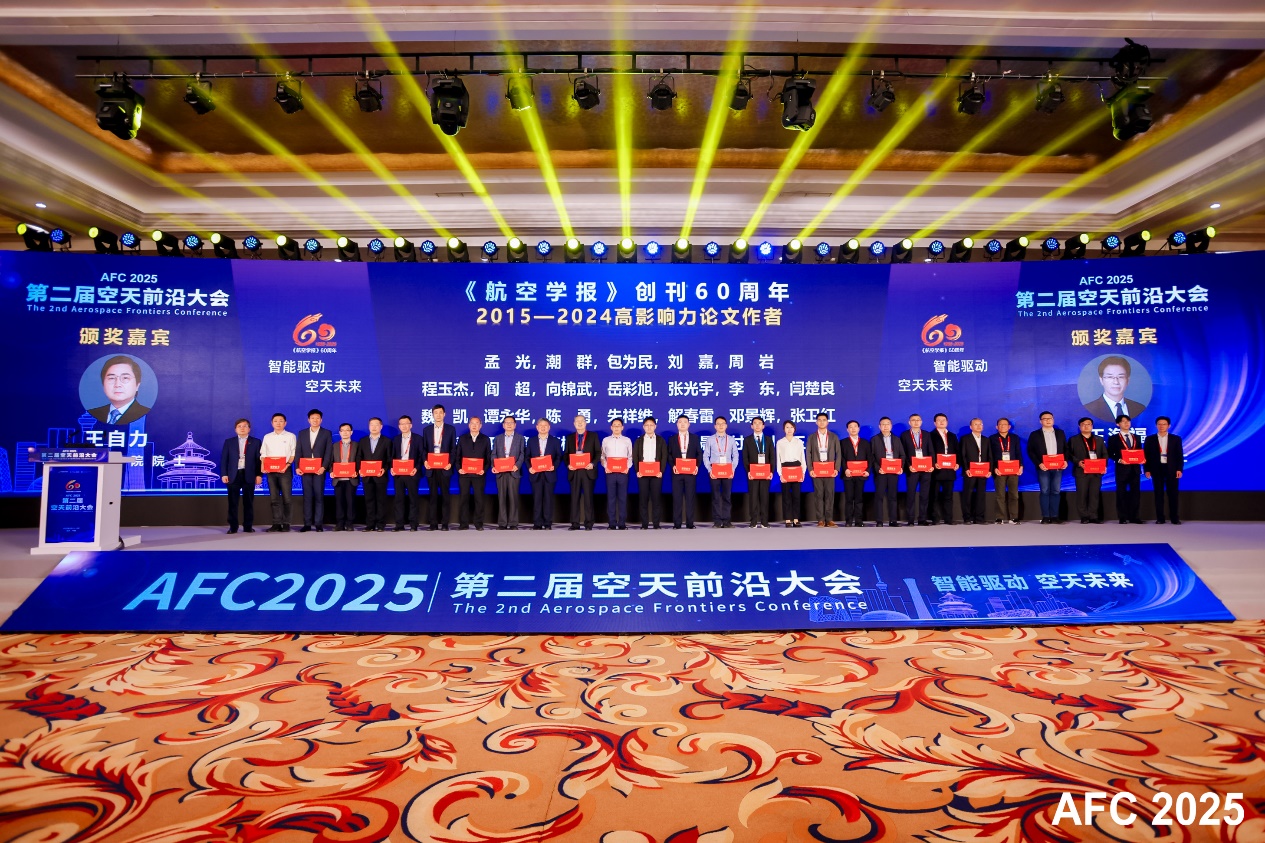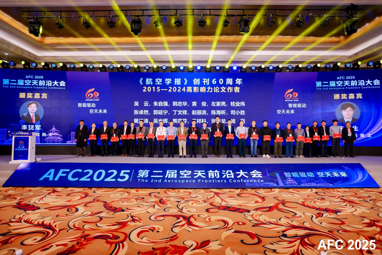 (通讯员:徐玲)4 月 12 日,由中国航空学会指导、航空学报杂志社承办的 “AFC 2025” 第二届空天前沿大会于北京盛大举行。此次大会以 “智能驱动,空天未来” 为主题,吸引了 20 位院士以及近千名航空航天领域顶尖高校、知名研究所代表参与。