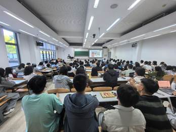 田保林教授主持,校内外近百名师生参与,讲座氛围热烈。