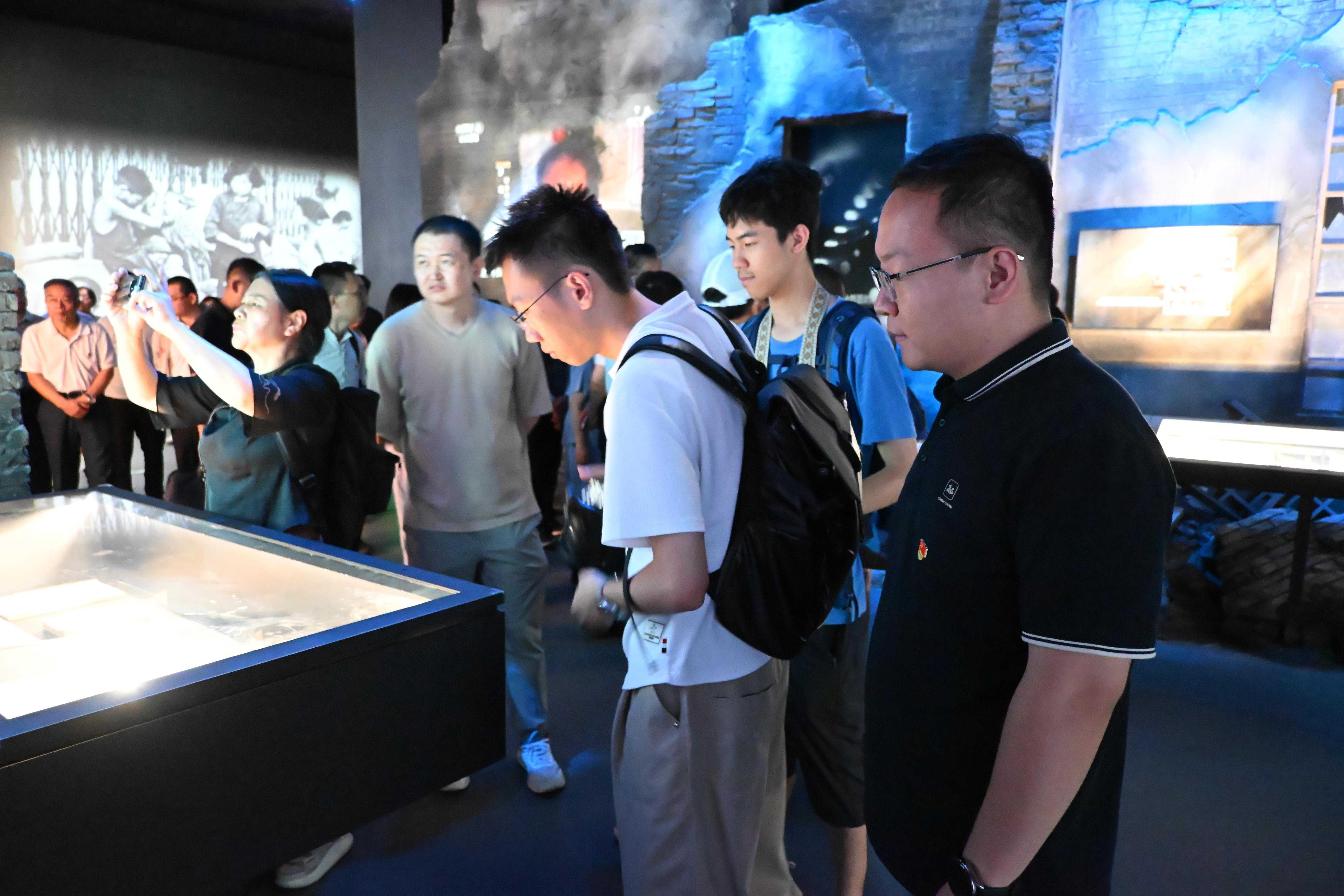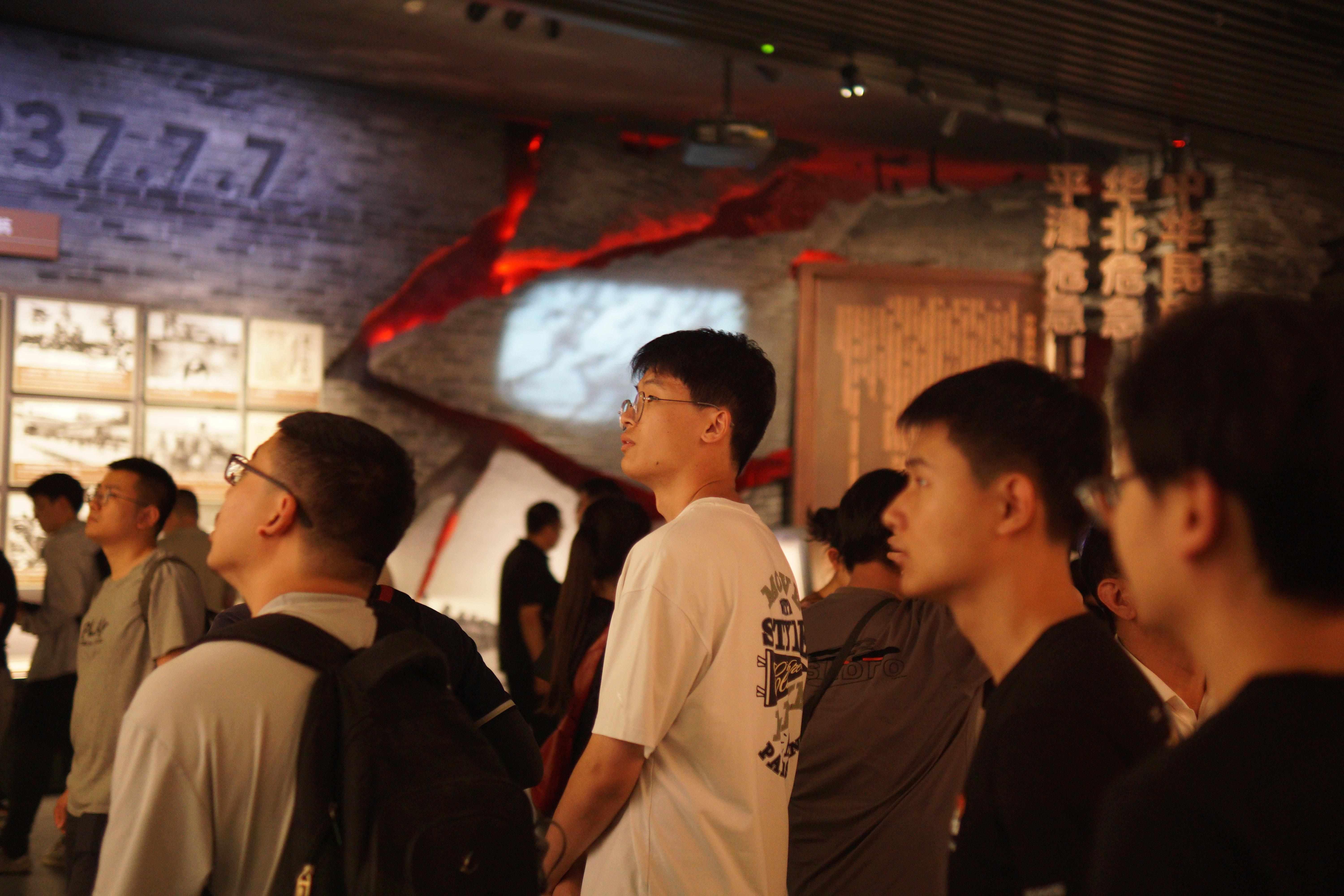 从宛平城进入庄严肃穆的抗战纪念馆内,序厅内的雕塑群瞬间将大家拉回那个救亡图存的年代。展览由“奋起抵抗 中国人民打响世界反法西斯战争第一枪”到“铭记历史 珍爱和平 携手构建人类命运共同体”共8个部分组成。沿着导引顺序,同志们依次参观“九一八事变”、“七七事变”等展区,泛黄的战地日记、锈迹斑斑的步枪,每一件文物都承载着可歌可泣的英雄故事。大家俯身细看抗战报道,驻足聆听地道战场景复原区的模拟枪声,深切感受中华儿女同仇敌忾的磅礴力量。