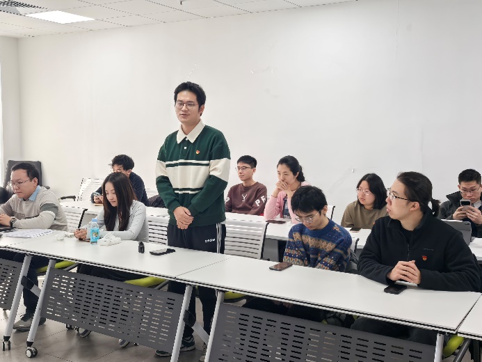 曾俊杰同志代表新一届支委会发言,表示将以党的二十届四中全会精神为引领,结合支部此前所做的坚实工作,以拓理论深度,谋路径创新,拔主题立意为目标,全力完善日常“学习日”活动机制,深化打造气动弹性学生党支部的党建品牌。