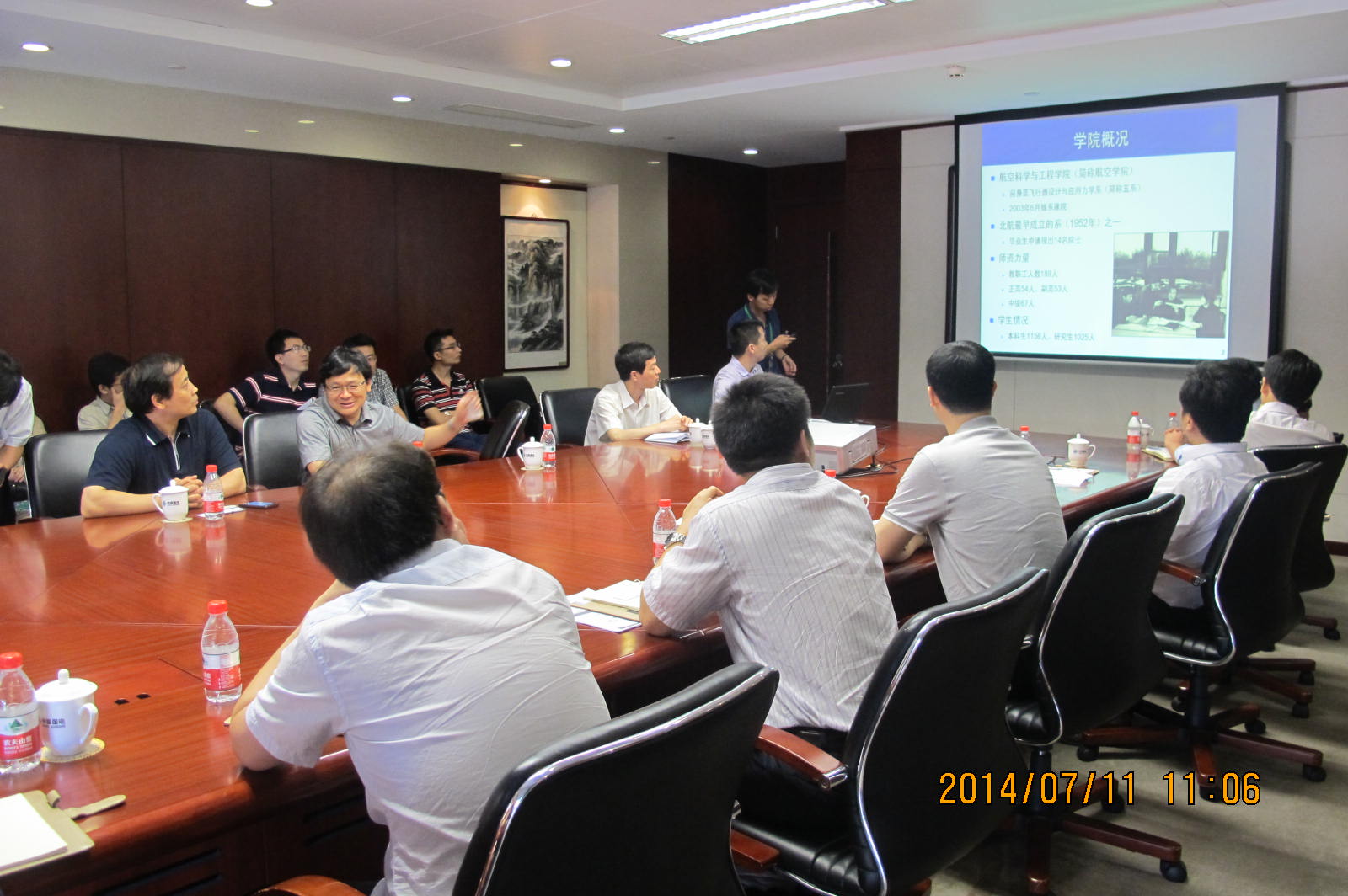 领导及教师参加活动,与联合动力党委书记褚景春、副总经理冯健、技术部主任代海涛、技术管理部副主任秦明等公司领导及相关技术人员进行座谈交流。