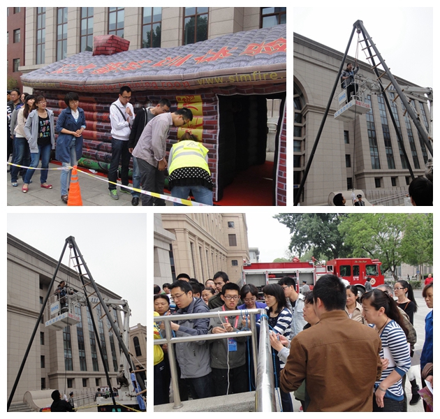 师生们在现场工作人员的指导下,亲自体验了”烟雾逃生、灭火器的使用、高空缓降逃生、火灾逃生绳结打法”等消防安全技能。