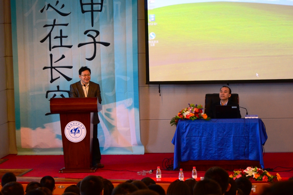整个报告会现场气氛热烈,座无虚席。同学们在仔细听取魏部长报告的同时,认真思考并记录了重点内容。在报告结束后的互动环节中,有同学就未来中国发动机研制的方向向魏部长提出了问题。魏部长提出了线性与非线性相互结合的发展道路,并作出详细解释,清楚地回答了同学的疑问。最后学生代表向魏部长敬献了鲜花,在同学们热烈的掌声中,本次报告圆满结束。