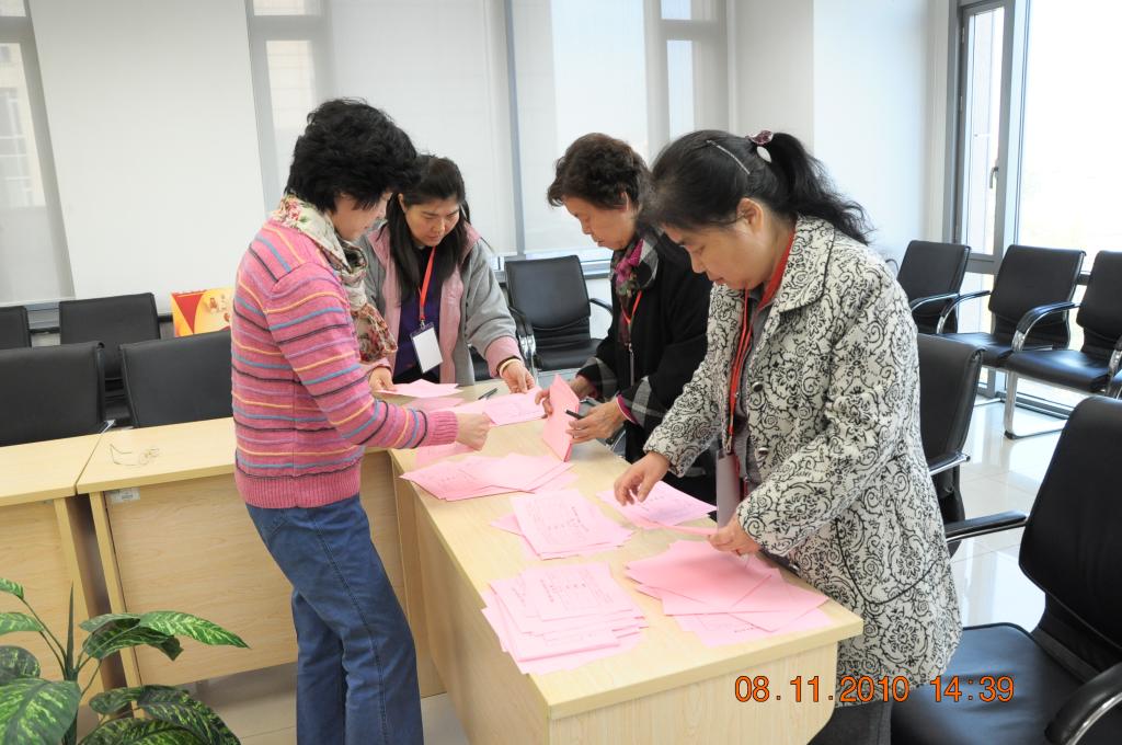 选举站设立了验证发票处、解说处、代书处、秘密写票处、投票处等,同时每个选举站均设立1名总监票人员、2名副总监票人员和4名监票人员。全院选民都积极行使自己的权利,认真投上庄严而神圣的一票。