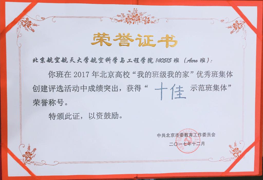 140515班从全市200多个参评班级中脱颖而出,获评北京高校“我的班级我的家”十佳示范班集体。