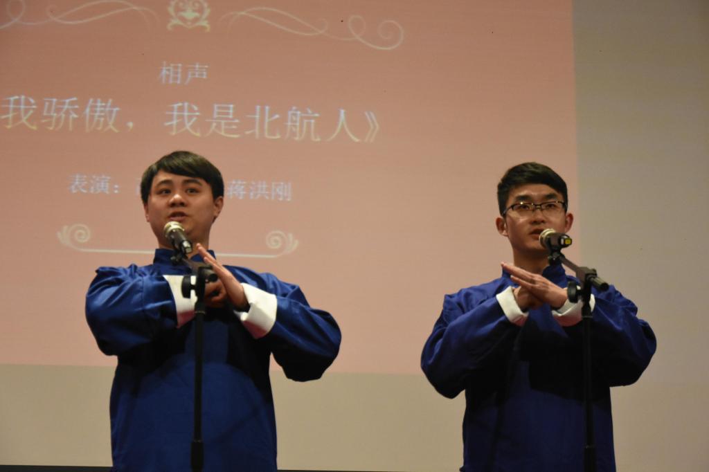 研究生带来的舞台剧《那些年》开场,熟悉的旋律,惊喜的演绎,点燃了整场晚会的气氛。舞蹈《四小舞王》凭借精湛的舞技,将大家带入到了梦幻般的童年。双吉他合奏《风向仪》伴着悠扬的旋律,让我们的思绪飘向远方。相声《我骄傲,我是北航人》展现了同学心中引以为傲的北航,幽默风趣的“包袱”引得掌声阵阵。嘻哈说唱《中二病》以独特新颖的形式,渲染出了欢乐的氛围。舞蹈《lemon》以激情的舞姿,将晚会推向了高潮。舞蹈《今天开始我们》以优美的舞步彰显了同学们活泼的青春风采,跳出了专属于她们的亮丽风姿。吉他弹唱《思念是一种病》为晚会送来一缕清新的风。舞蹈《佛系双人舞》带给我们一份超凡脱俗,出淤泥而不染的纯洁。晚会中场还穿插了精心设计的游戏、抽奖等环节,现场观众参与热情高涨,吸引了几位小朋友的加入,将晚会气氛推向最高潮!晚会的最后,SY17055班献上一首《相亲相爱》,为晚会画上一个圆满的句号。