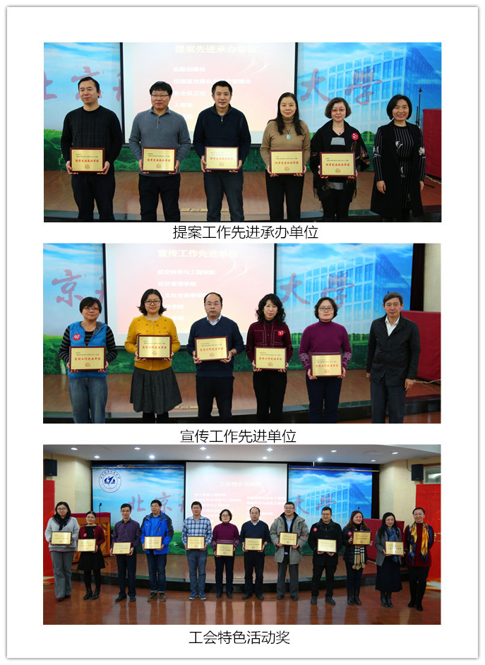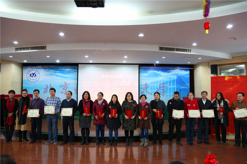 1月12日下午,学校工会在思源楼举行了2017年度工会工作表彰大会,对先进集体和个人进行了表彰,颁发了奖牌和荣誉证书。学校副校长魏志敏、校工会常务副主席程文浩、机关部处有关领导、部门工会主席和委员以及获奖个人参加了表彰大会。