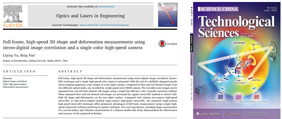 此外,潘兵教授还受邀为《Science China-Technological Sciences》撰写单相机三维变形测量方法研究进展综述论文“Review of single-camerastereo-digital image correlation techniques for full-field 3D shape anddeformation measurement”,该论文被选为《Science ChinaTechnological Sciences》2018年第1期封面文章。