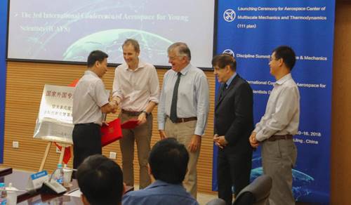 成功举办了为期一周的学科咨询与学术交流国际周活动。活动包括空天多尺度力学与热力学学科创新引智基地(以下简称“111基地”)启动仪式、航空宇航和力学学科论坛、学科发展方向研讨会、学术报告以及国际航空科学青年学者学术会议(ICAYS)。40余位来自美国、英国、加拿大等地以及国内兄弟院校的知名专家学者齐聚北航。活动前期,各位专家参观航空航天博物馆和沙河校区,并按专业深入到各系所就学科发展等问题进行探讨。