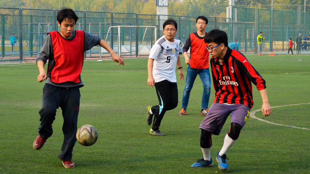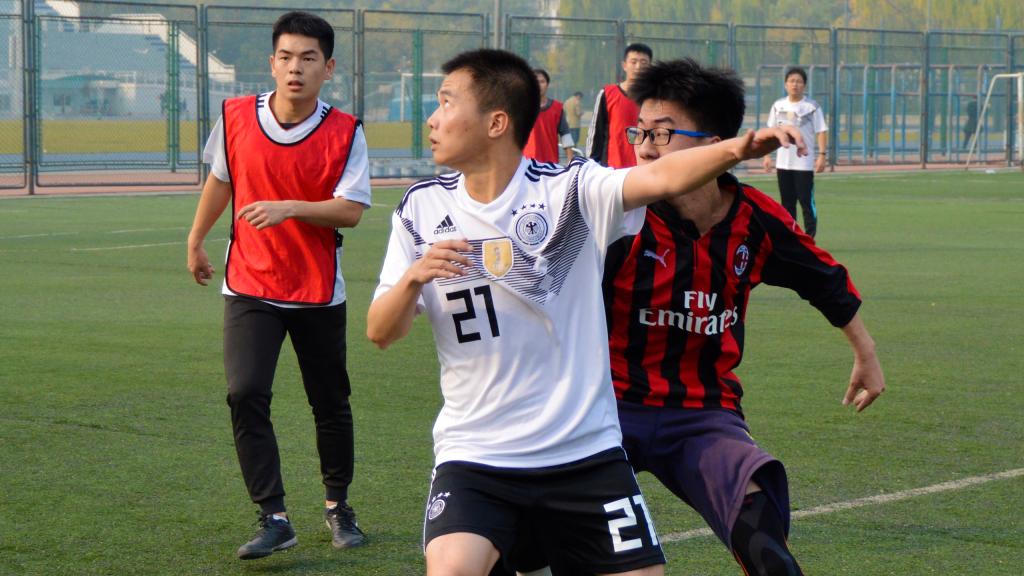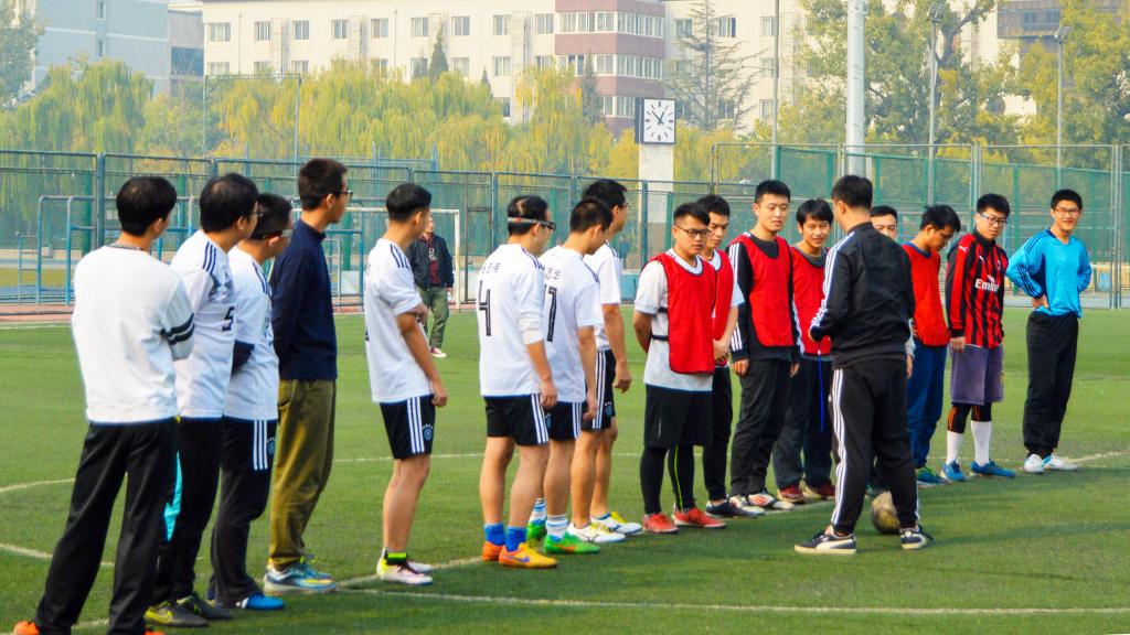 终于迎来2018年度研究生足球联赛的最后两场比赛:季军赛和总决赛。球场边高大的杨树在阳光中投下朦胧摇曳的树影,它们是球员们最忠实的观众,泛黄的树叶在微风中沙沙作响,仿佛在为今天的球员们鼓掌欢呼。虽然天气微凉,空气欠佳,但是这些外在因素丝毫没有影响同学们的观战热情和球员们的比赛激情,大家都早早的来到了赛场进行准备。