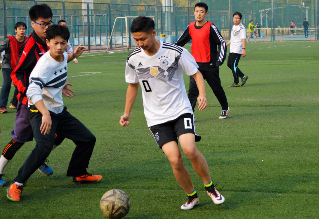 在上半场时间还剩5分钟时,专硕4班获得了一次角球机会。一脚高传中球堪称完美,正落到博士班的禁区之内,博士队后卫全力防守。但是此刻,幸运女神站在了一路拼搏的专硕4班这边,在空中划过优美弧线的足球打在了博士队防守队员身上直接入门,比分改写成2:1。