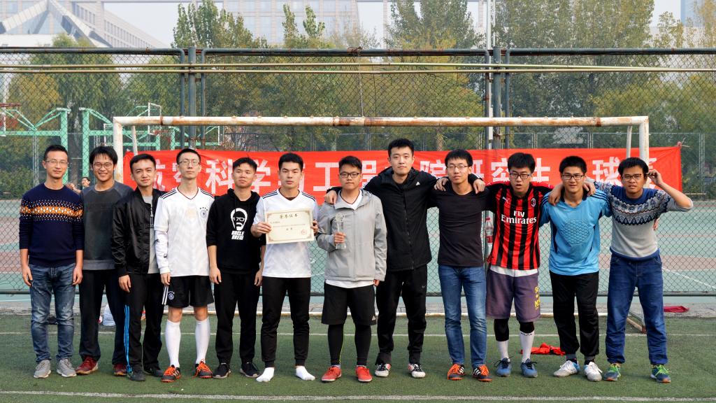 足球赛的季军。让我们恭喜博士联队,同时,研一专硕4班以拼搏无畏的精神一路踢入四强,面对曾经的对手,没有减少半分斗志。敢于亮剑,敢于争先的态度赢得了所有人的赞叹与尊敬。轻微的雾霾让阳光温柔地洒在草坪上,在球员们的衣服上亦涂上了淡淡金色。