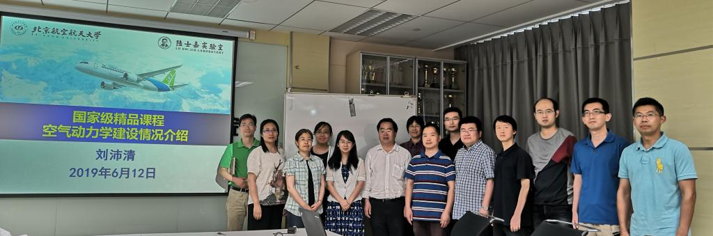 刘沛清教授首先介绍了课程基本情况,然后分别从理论课程建设和实验课程建设两个方面为老师们介绍了经验,并分享了自己在教学及团队建设过程中的感受和体会。刘教授深情回顾了我校《空气动力学》的历史。该课程于1952年建校之初由我国著名空气动力学家陆士嘉、徐华舫、吴礼义等教授建设,在教学水平、教材建设和教学设备多方面的综合指标处于国内外同类课程教学的领先位置。目前课程团队由15名教师组成,团队成员通过定期研讨等形式保证了教师教学水平和教学质量稳步提升。然后,刘教授通过教学案例展示了如何激发学生的学习兴趣、提高创新意识。例如,在课程中,他们引导学生从鸟的飞行原理、自然现象和实验过程中获取灵感、凝练科学思想;他们还在课程中介绍了空气动力学对现代战斗机和大型客机发展的推动作用以及飞行奥妙与空气动力学原理。刘教授特别指出了实验、实践环节的重要性,提出了专业基础实验平台、专业综合实验平台和集成创新实践平台的分层级实验平台建设和分阶段人才培养理念,并强调了实验平台一定要开放共享,支持本科高年级学生进入实验室。最后,刘教授认为,教学是大学造就人才职能中最重要的一项活动。既是一门科学、也是一门技术、更是一门艺术。是科学就要不断地思考和探索教学的规律性;是技术就要精益求精、不断提高教学技艺;是艺术就要永保一种积极向上的教学热情。他还幽默地感慨:“感谢流体所让我过足了教学的瘾、感谢学校让我过足了办学的瘾、感谢学校让我过足了建设风洞的瘾”。参会教师还与刘老师就团队建设、实验设置、课程安排等问题进行了深入探讨。