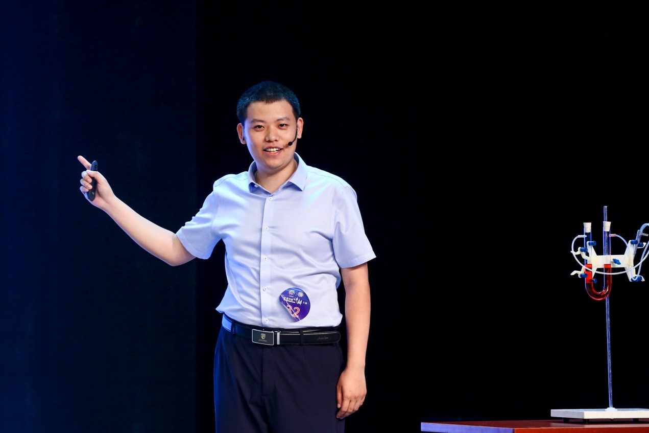 博士研究生王依兵,经过工信部初赛选拔代表工信部参赛并获得优秀奖。他的自主命题讲解题目是《飞机的长“鼻子”是做什么用的》,用生动的语言和有趣的实验向观众阐释了飞机空速管的测量原理,展示了完场足球赛果