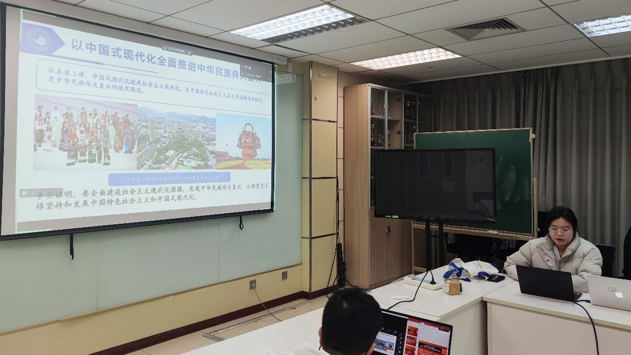博士生19051和19052学生党支部于新主楼C708联合开展了以“逐梦现代化,支部邀请研究生宣讲团的陈逸然和张亦凯两位讲师,围绕“以新型工业化推动中国式现代化”和“乡村振兴伟大实践——解码‘两山’理念的发源地浙江安吉”两个主题开展宣讲。
