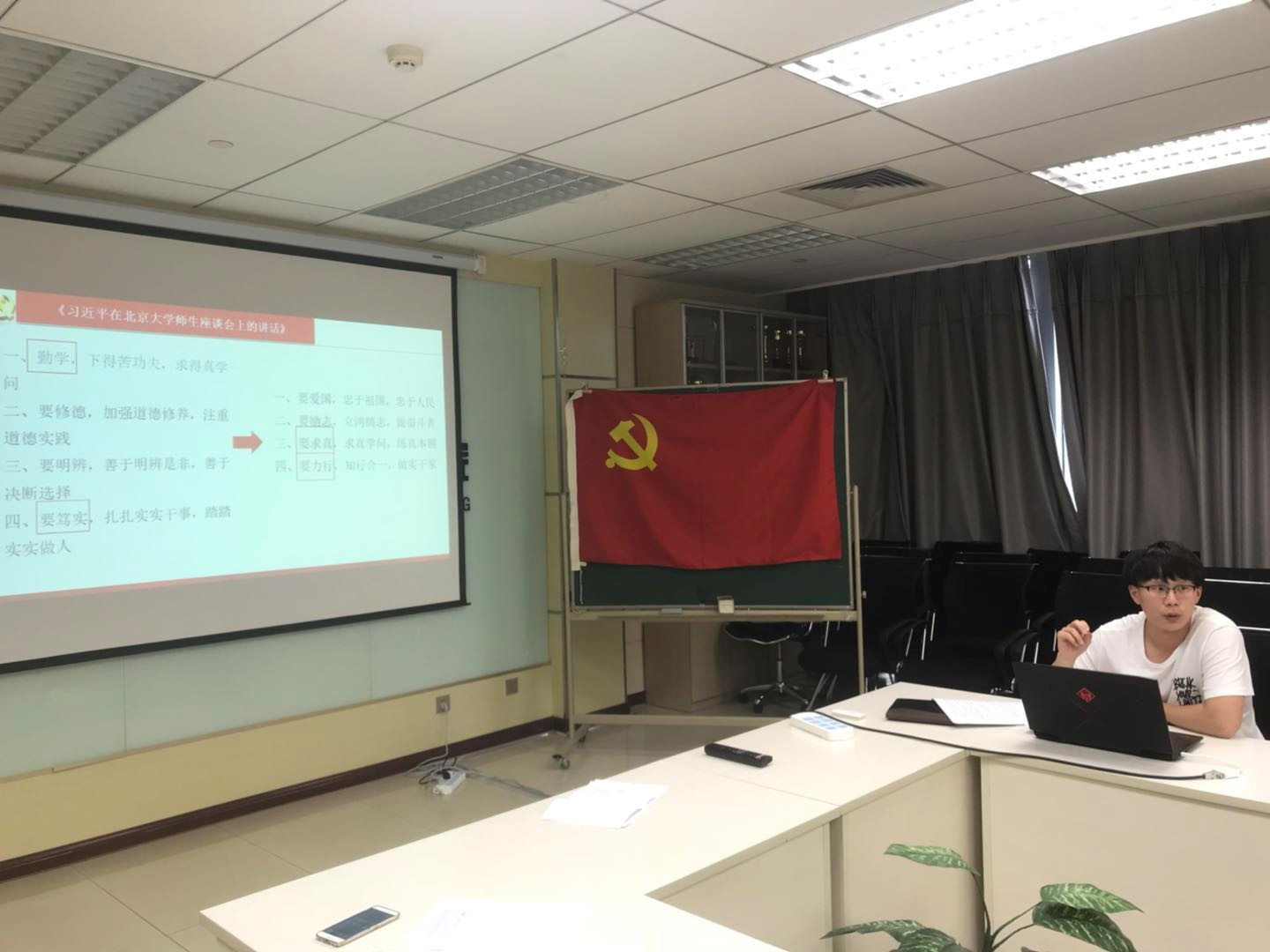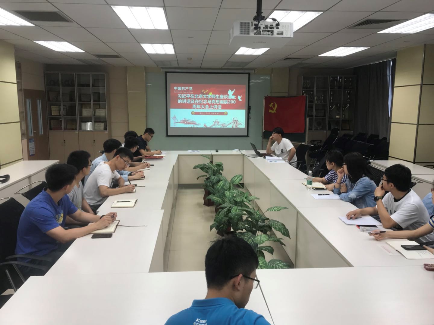 硕士17051党支部全体党员集中学习了习近平总书记在北京大学师生座谈会上的讲话及习近平总书记在纪念马克思诞辰200周年大会上讲话。本次学习由支部书记付子豪同志进行梳理和讲解。