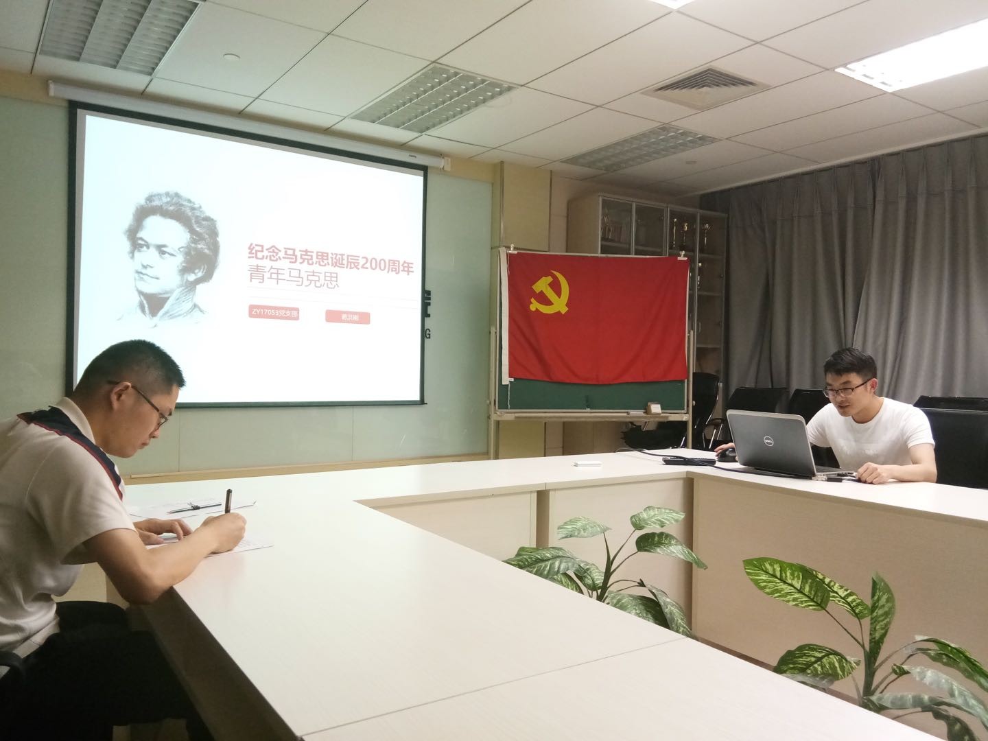 在学习习近平总书记在纪念马克思诞辰200周年讲话环节,蒋洪刚同志就马克思的生平向大家做了介绍,雷昊睿同志向同志们介绍了马克思主义理论和马克思主义中国化,蔡本元同志发表了阅读《共产党宣言》之后的一些感受。