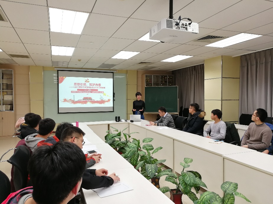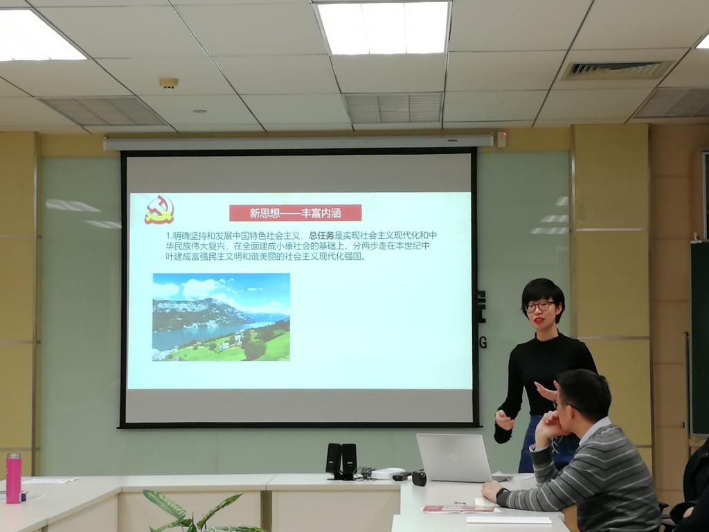 16051党支部邀请了北京高校博士生宣讲团、学习贯彻十九大精神北航研究生宣讲团的王雪晴同志在支部学习会上作了题为“思想引领,筑梦青春——习近平新时代中国特色社会主义思想解读”的报告。本次会议应到20人,实到20人。