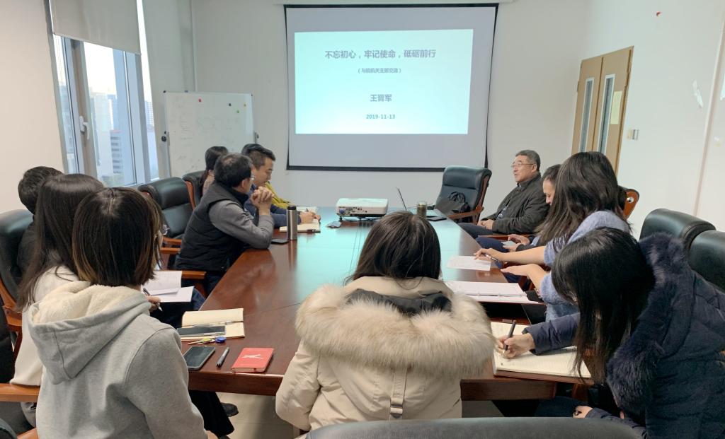 王晋军教授首先带领大家沿着中国共产党带领人民艰苦奋斗的历史,感悟了党为中国人民谋幸福,为中华民族谋复兴的初心和使命。并强调,践行初心使命,就要对党绝对忠诚、勇于担当尽责,习近平新时代中国特色社会主义思想是全党全国人民为实现中华民族伟大复兴而奋斗的行动指南。作为教育工作者要始终以立德树人为根本任务,努力培养社会主义建设者和接班人。最后,王晋军教授针对习近平总书记在全国教育大会上提出的“要把立德树人融入思想道德教育、文化知识教育、社会实践教育各环节,贯穿基础教育、职业教育、高等教育各领域,学科体系、教学体系、教材体系、管理体系要围绕这个目标来设计,教师要围绕这个目标来教,学生要围绕这个目标来学”与机关党支部党员作深入探讨和交流。