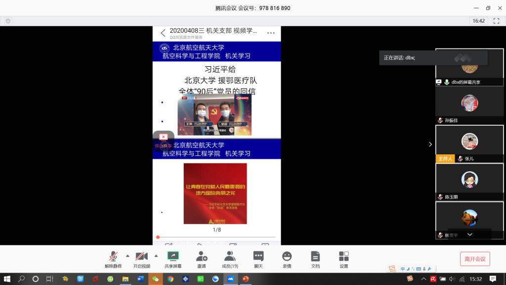 机关教职工在线开展“学习日”活动,机关全体20名教职工集体学习了习近平总书记给北京大学援鄂医疗队全体“90后”党员的重要回信精神、习近平在二十国集团领导人特别峰会上的重要讲话。