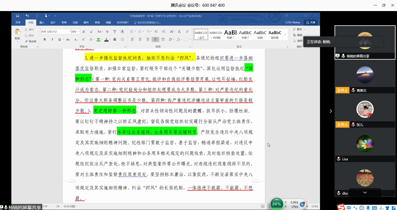 机关教职工在线开展反腐倡廉主题“学习日”活动,机关全体20名教职工集体学习了《党委(党组)落实全面从严治党主体责任规定》精神及《违反相关规定典型案例的通报》。