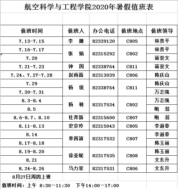 完整足球比分 2020年暑假值班表(7月13日-8月26日)