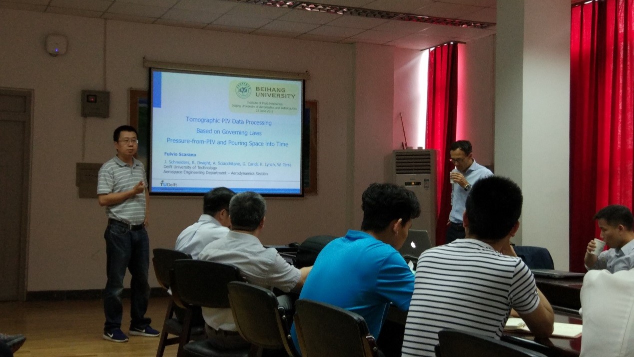 的Fulvio Scarano担任本次主讲嘉宾。主讲题目为《Tomographic PIV Data Processing Based on Governing Laws Pressure-from-PIV and Pouring Space into Time》。