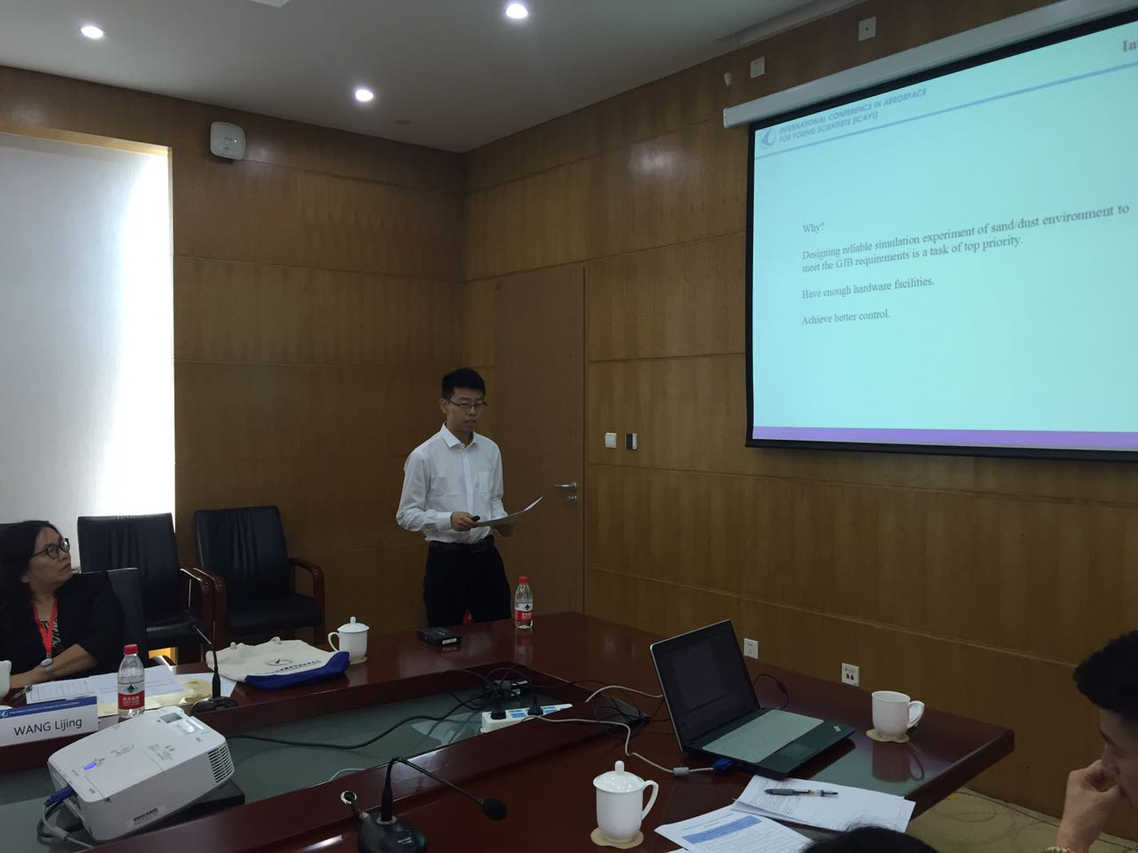 报告内容是:针对直升机舱内沙尘环境仿真设计的SAE-PID控制器。报告介绍了硬件平台的设计以及SAE-PID算法,并与传统PID算法的结果进行了对比,结果显示,SAE-PID算法的反应速度和PID一样,并且超调量更小,可以很快达到稳态。此外,还在不同沙尘量的环境条件下对直升机舱内的风速以及沙尘聚集率进行了计算。在最后李鹏飞还与来自巴基斯坦的Hassan教授探讨了控制反馈方面的相关问题。