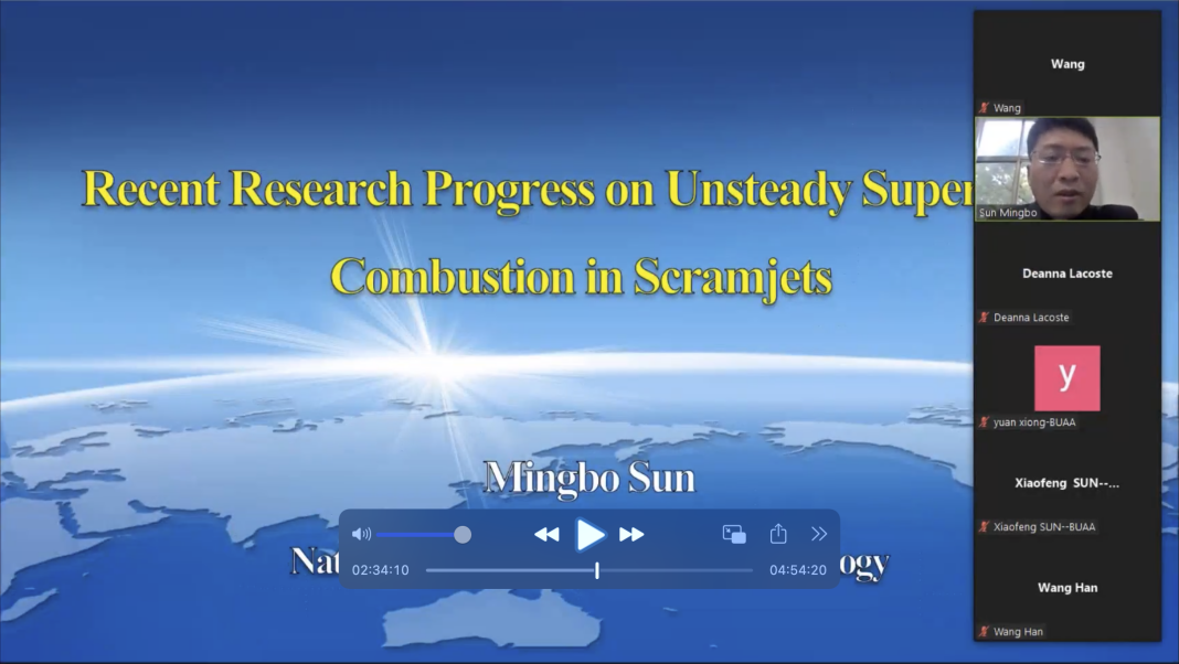 中国国防科技大学的孙明波教授以《The recent research progress of unsteady supersonic combustion》为主题,对近期超声速燃烧中的研究进展进行了报告。