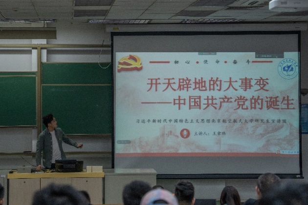 本研学生党支部邀请了习近平新时代中国特色社会主义思想北京航空航天大学研究生宣讲团的两位讲师,带来两场党史学习教育讲座,分别是倪天璇讲师《革命精神——百年大党永葆生机的秘诀》的及王章玮讲师的《开天辟地的大事变——中国共产党的诞生》,硕士生19052学生党支部、本科1705及本科1805大班的同学们参加了本次讲座。