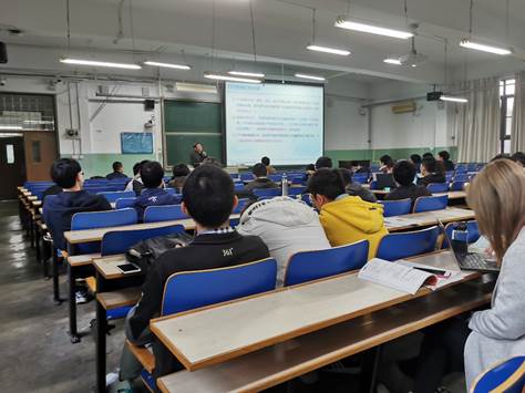 16级本科生于一号教学楼顺利进行了校历第七周学习日活动,本次活动的主题是升学就业指导促进学生未来发展规划,活动由辅导员杨旭彤主持,特邀请蒙志君、闫超、姬金祖三位老师为同学们介绍了自己的课题组研究及发展方向,并解答了同学们提出的问题。