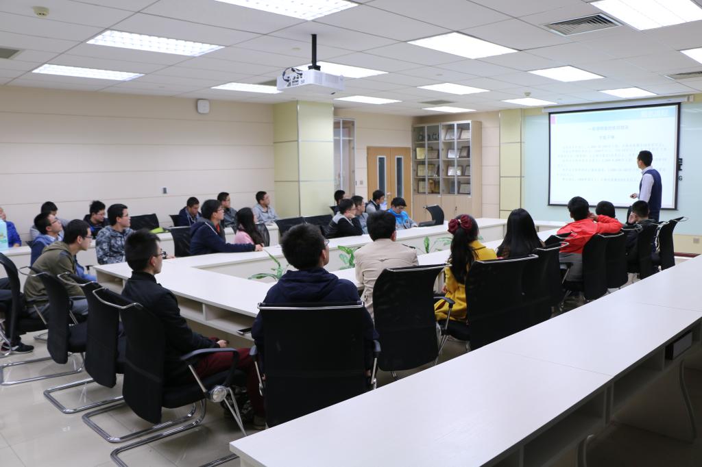 学社理事会科技部部长刘瑶主要介绍了报名流程和论文格式等方面的注意事项。首先,他简要的介绍了网上报名环节的操作流程,通过登陆流程的截图带领大家过了一遍报名的流程。此外,介绍了创意大赛和科技竞赛的论文格式的要求,并且通过实际的修改演示了修改过程,对同学们后续修改论文格式有很大帮助。