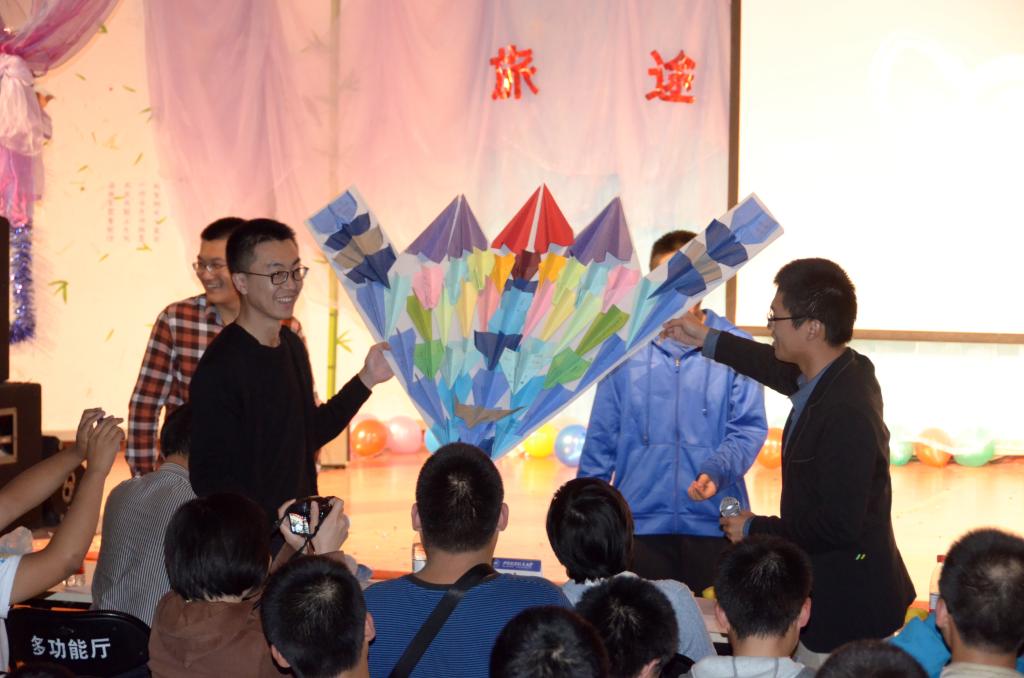 带着感恩与内心的激动,大班委代表全体学生为金鑫辅导员和章异嬴辅导员献上一份神秘的礼物——写满祝福的纸飞机。十月的生日蜡烛,在这里一起吹熄;十月的生日歌,在这里一起唱响。别样的生日聚会让每个人终生难忘。手语演绎的真情,歌声唱响的感彻,让我们都植下一颗《感恩的心》。最后晚会大班委的合唱《干杯》结束,为晚会画下完满的句号。