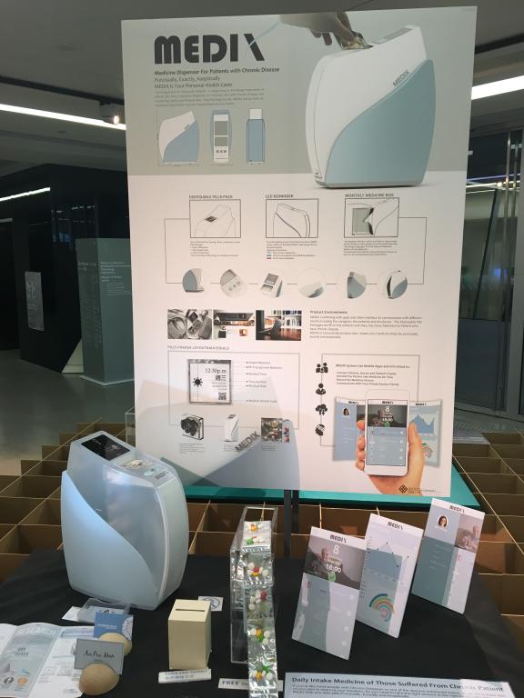 香港理工大学创新楼中的“理大设计”展览是我们此行的重点,展览展示的是同学们在生活中发现的问题及其解决方案或是一些创新、创意与思考,比如针对目前广大手机低头族的“HEADS UP”项目,提出了一些使用虚拟现实技术的解决方案,又比如“MEDIA”项目,将所需吃的药放入机器,机器封装每顿所需的药并按时提醒患者。此类项目展示了同学们对身边问题的思考,可以极大的提高大家的创新意识。看完展览后,能感受到理大同学善于思考,能发现问题并提出问题,对于生活有着十足的热情,思维活跃,游学小组成员一致认为北航缺少此类活动,缺少一个调动大家发现问题,提出问题的平台,我们的一些活动更注重于解决问题,而发现并归纳提出问题常比解决问题更加重要。