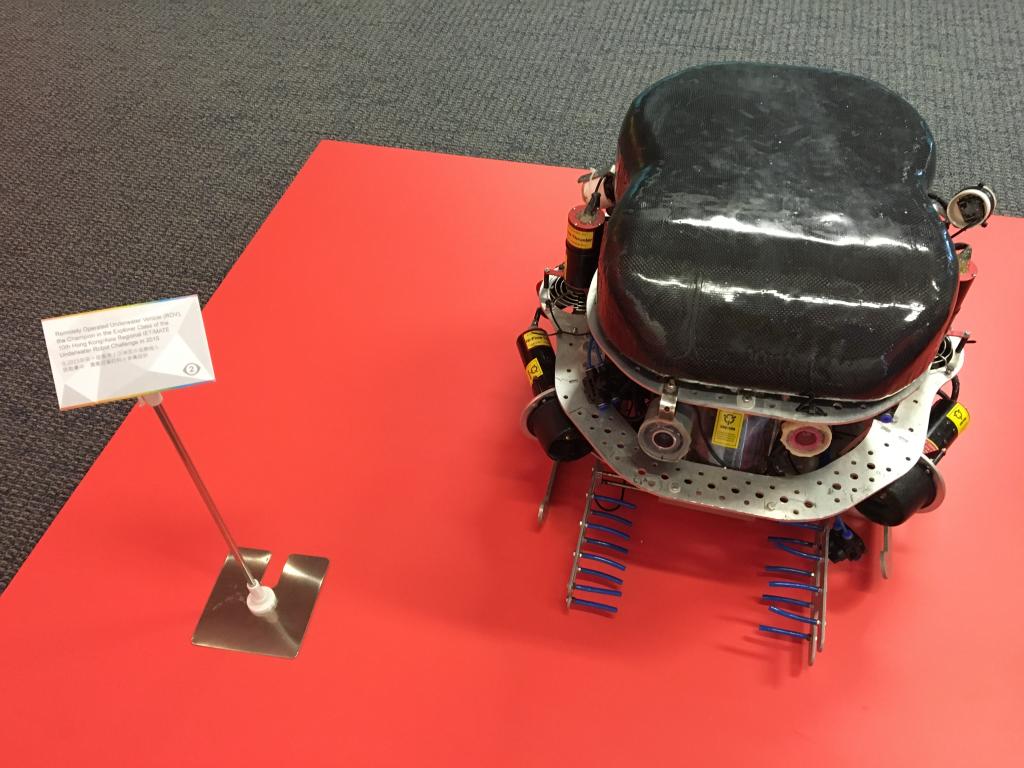 进入教学楼的内部,来到了香港科技大学25th学生科技作品展,如同北航“冯如杯”作品展一样,“创新·生活”,“科技·未来”等不同主题的展品陈列在教学楼内。“打羽毛球机器人”,“新型纳米材料”……充满科技创新特质的展品让我们惊叹不已。在这里,我们看到了港科大学生身上散发的青春与活力,也为自己的学习生活提供了帮助。走到教学楼的尽头便可以看到远处的大海,美丽的风光尽收眼底。恰好天边飘来一朵云,海风一吹,飘起了小雨,在这片安静而祥和的地方,让人陶醉,不愿离开,可以说港科大的校园是游学到今天以来环境最好的校园。羡慕港科大学生这美丽的学习环境,也看到了自身与世界一流大学学生的差距。
