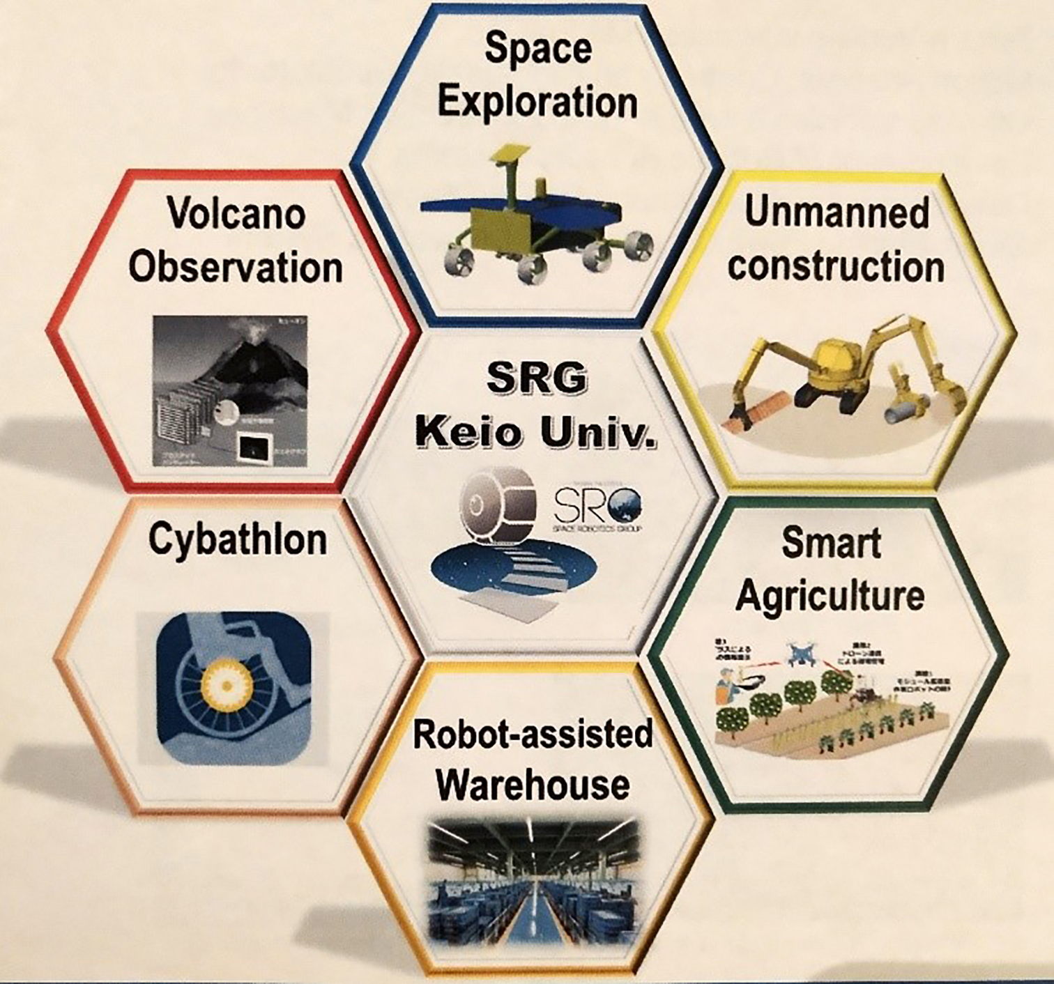 交流的第二站是机器人实验室,该实验室的CENYA ISHIGAMI 教授向我们介绍了他们实验室的研究方向与成果。该实验室对机器人的移动系统进行基础研究和应用研究,目的是应用于行星探测车的和领域机器人的开发。其中基础研究的主要内容如下: