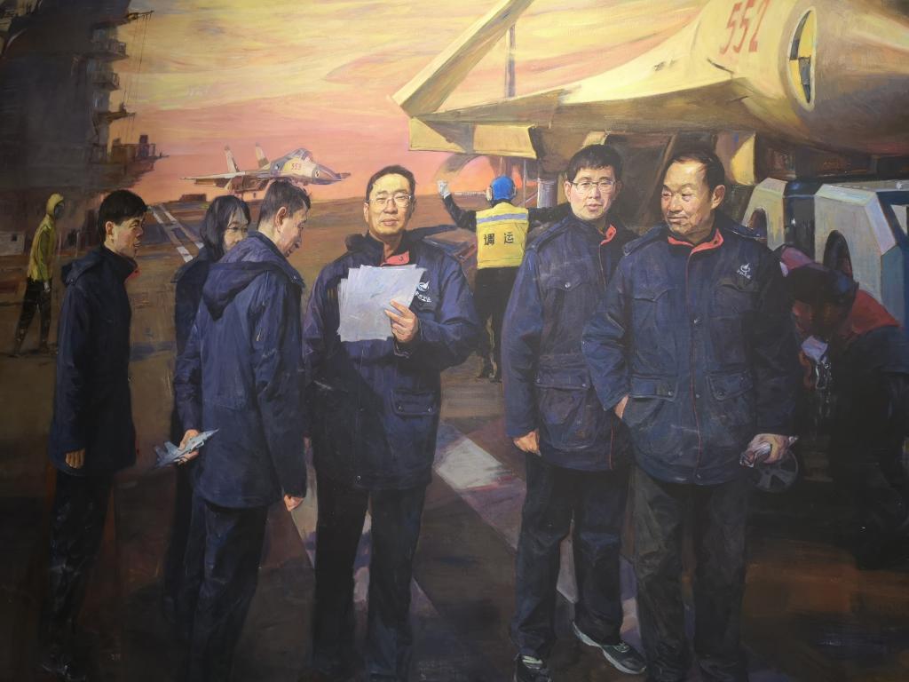 在《历史巨变》展区,一幅油画静静展示在走廊上。油画的内容是杰出校友罗阳指挥协调着舰载机在航母上的试验的画面。今年11月,罗阳学长入选100名改革开放杰出贡献对象,罗阳总指挥带领研发的歼15舰载机成为了我国改革开放40年以来航空工业建设史上浓墨重彩的一笔。站在油画前,SY17053班很多同学纷纷表示受到了罗阳学长事迹的影响,选择来到北航,选择来到完整足球比分
