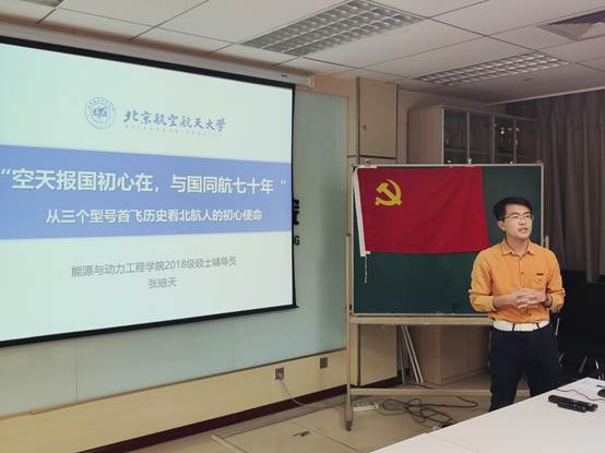1. 第四期北航研究生宣讲团张皓天同志作“空天报国初心在,与国同航七十年”主题的党课。