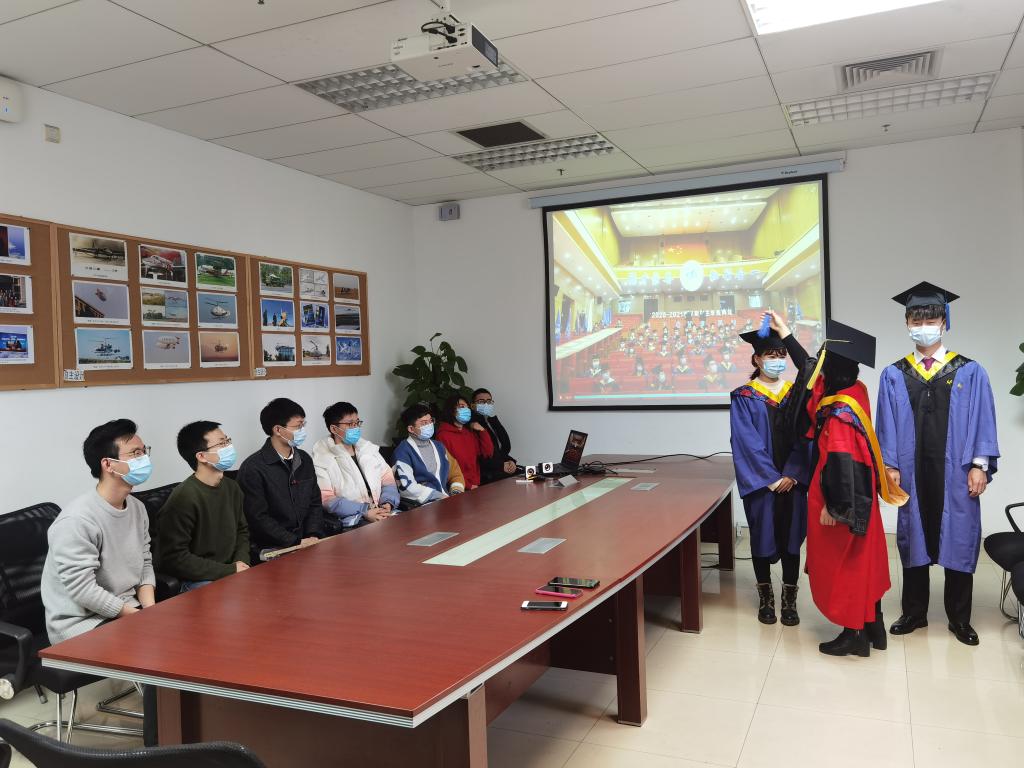 积极号召课题组,自行举办立德树人课题组的分会场,同时进行分会场毕业典礼的直播。尽管为满足疫情防控要求使得分会场人员不能过多聚集,但是课题组的直播让毕业生们感受到来自导师们的关怀与注视。虽然不能像往年一样大家齐聚一堂,共同庆祝,但是在这个冬天,温暖长存。