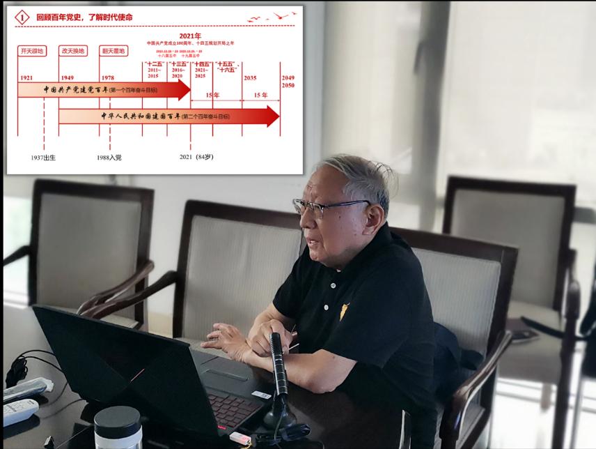 老教师徐扬禾教授为同学们讲党课,主题为“党史校史贯通学,红色基因代代传”。此次党课在线上线下同时进行,两支部30余名学生党员和积极分子参加了学习。
