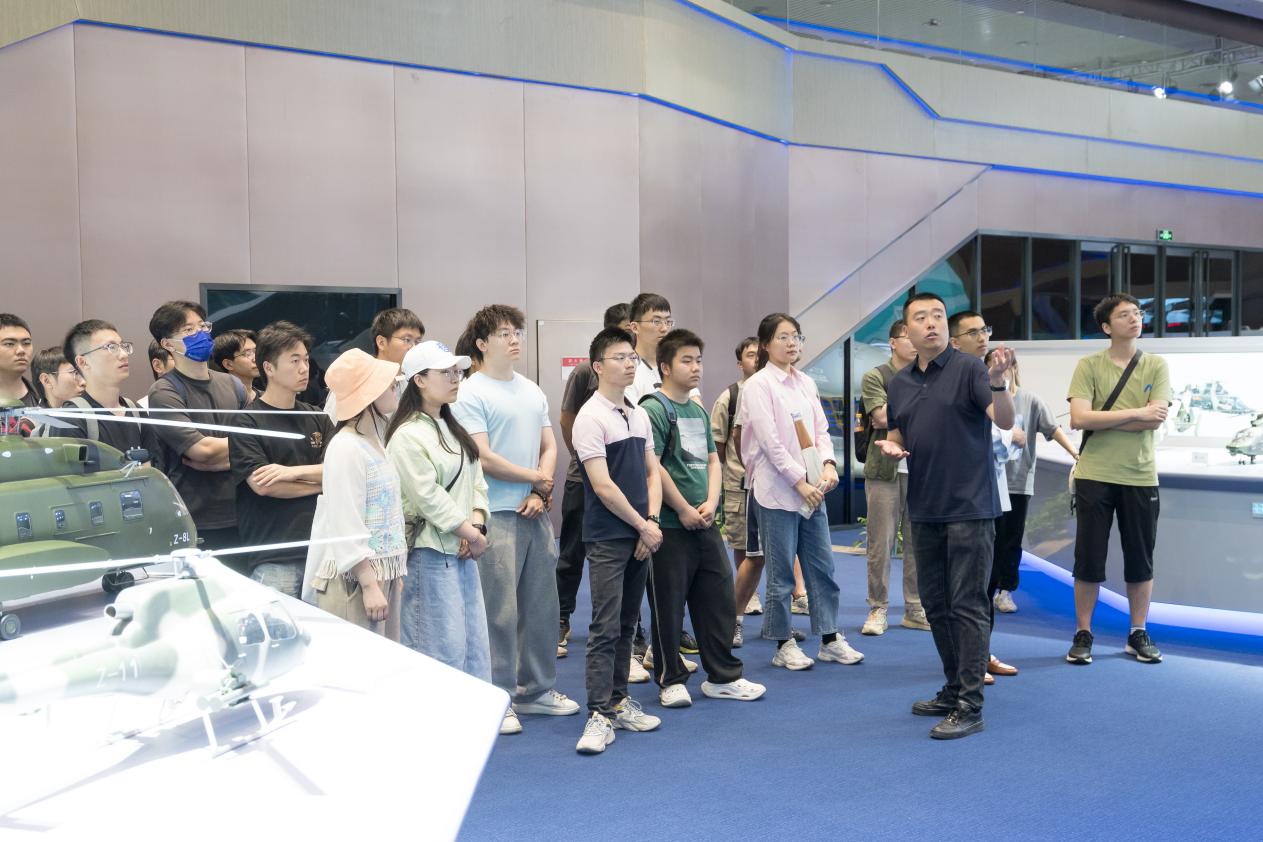 在中航技展区,中航技的老师向同学们热情且全面地介绍了中航技在进出口方面所负责的主要机型,如攻击11、翼龙、J-35AE、直-8L等。