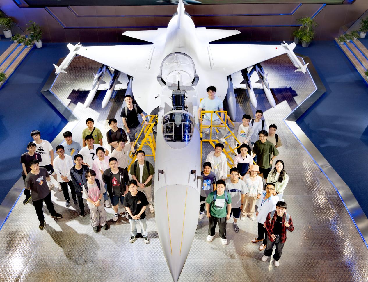 图为同学们与JF-17飞机模型的合照