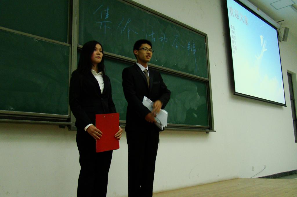 主持人宣布评选开始 评委组 正在展示的15班 12班在演讲 1105大班新生班集体答辩赛顺利结束 2011年11月4日晚7点,完整足球比分 于J0-001举行了新生优秀班集体答辩活动预赛。